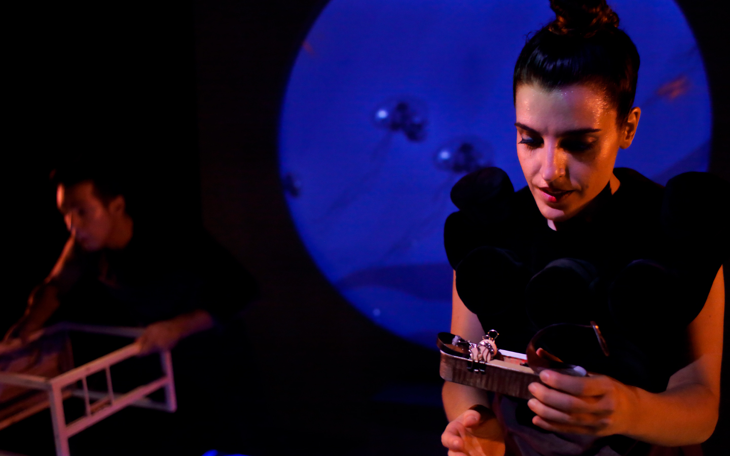 Los intérpretes enfrentan el desafío de moldear y transformar el espacio y los objetos en tiempo real como parte de su viaje emocional. Este viaje se expande mediante la interacción con elementos tecnológicos y la incorporación de propuestas plásticas, añadiendo así una riqueza y un dinamismo excepcionales a la narrativa y la plástica del espectáculo.