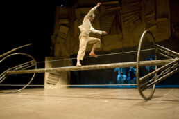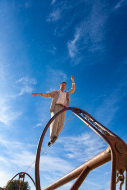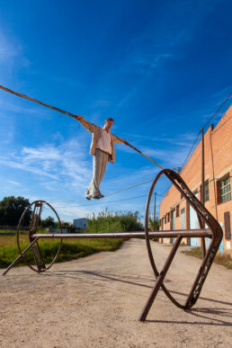 Refugi es un espectáculo basado en equilibrios, el físico que te permite no caer del cable y el emocional que te permite compatibilizar miedos e ilusiones. Refugi es un camino que comienza en el corazón, pasa por el estómago donde la intuición juega un papel decisivo y recala en el escenario para que el público dé continuidad a este caminar. Refugi también es una lucha con el desgaste físico y energético que conlleva la edad, superada a través de la ternura y la vulnerabilidad de un personaje que acepta a regañadientes todas sus limitaciones.
